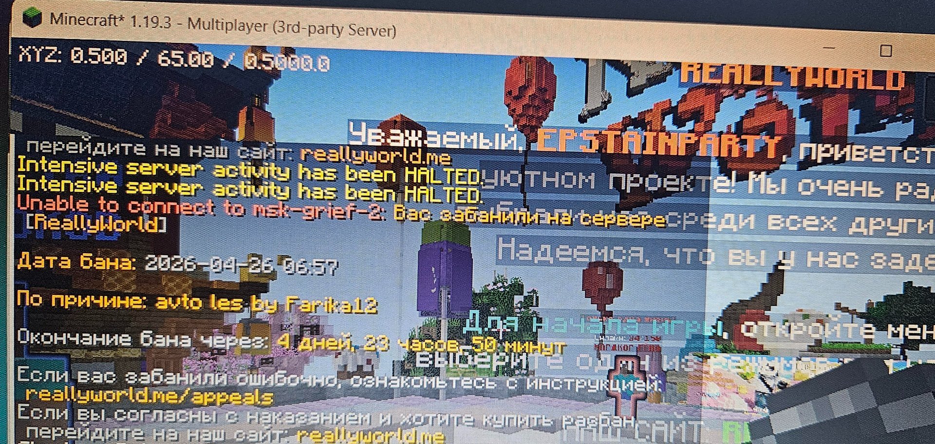 Здравствуйте. Меня забанили по причине auto les. Я не использовал читы. В сборке был только мод Gamma-Utils (для яркости), возможно античит воспринял его как нарушение. Я уже удалил этот мод и готов играть без него. Прошу пересмотреть бан. Спасибо.