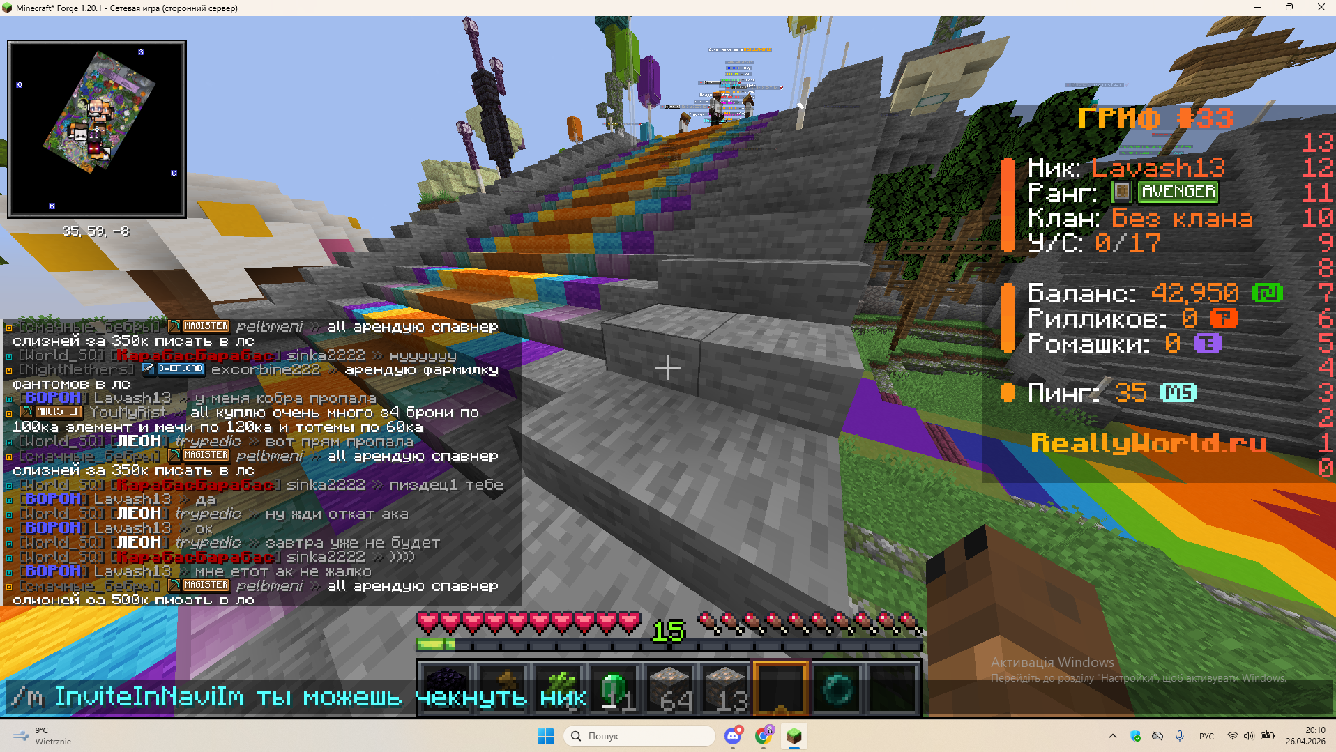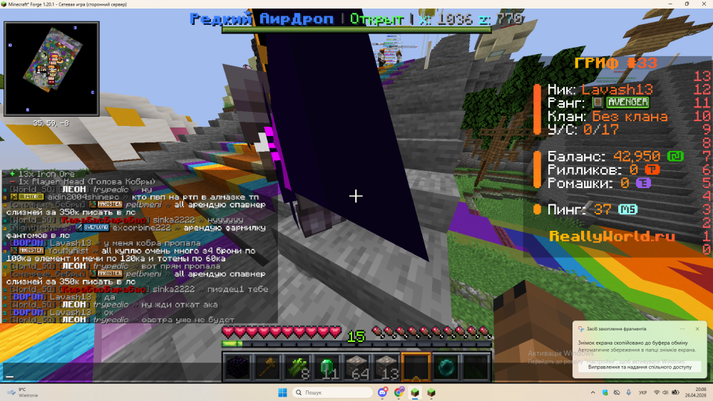 1. Ваш ник:Lavash13 Ник нарушителя:5vpotoke,sinka2222 Дата нарушения:26.04.2026 Суть нарушения:Угрозы украсть акк и шантаж На каком гриферском режиме было нарушение (MEGA-GRIEF/GRIEF-1.16) :GRIEF-33 Доказательства о нарушении (фото/видео):ниже Дополнительный комментарий:шар кобры передал на акаунт друга я хотел что-бы мне купили донат взамен на шар кобры а потом меня начали шантажыровать и угрожать взломом акаунта начала переписки нету извините