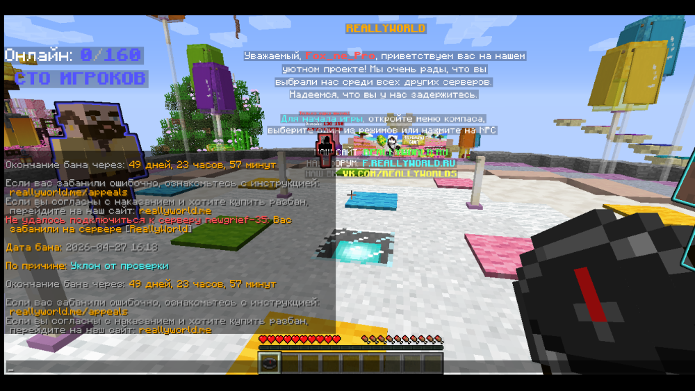 Доп Комментарий: Была на спавне, вдруг проверка, задаю модератору 2 вопроса по типу что такое анидеск потому что я не знаю что это, меня проигнорировали и забанили. Я играю без читов. Немеренное "включение дурочки" с моей стороны не было. Прошу помочь, готова снова пройти проверку.