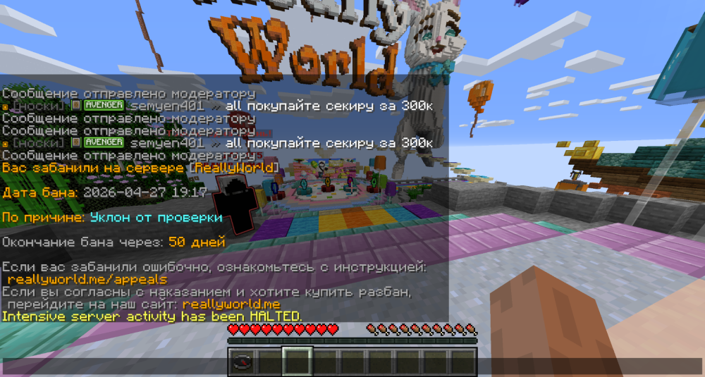 1. Ваш ник:Sasha_Artamonov Дата нарушения:27.04 Суть нарушения: модератор забанил пока я скачивал анидеск по причине уклон от проверки Номер грифа и режим гриферского выживания: гриферское выживание 75 гриф Доказательства о нарушении (фото/видео):https://max.ru/join/FHUn0M8AnBkEyQUF4917bnQhBBt8C_6PlbqwNKtkoew Дополнительный комментарий: модератор даже не показал свой ник
