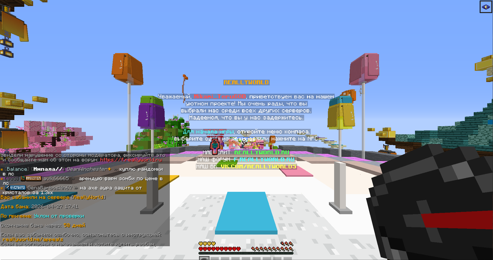 Дополнительный комментарий: Я бегал по спавну и меня вызывают на проверку, спрашиваю причину проверки ведь я ничего не делал, модератор говорит: звёзды подсказали, я говорю что я не могу скачать анидеск потому что сайт в России не грузит и если включить впн то меня кикнет и он забанит за лив с проверки, модератор говорит качай с другого сайта, я ему говорю что с официального не хочу скачивать так как уже один раз скачивал и мне скачали вирусы, прошу разбанить меня