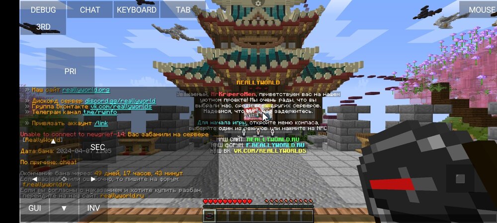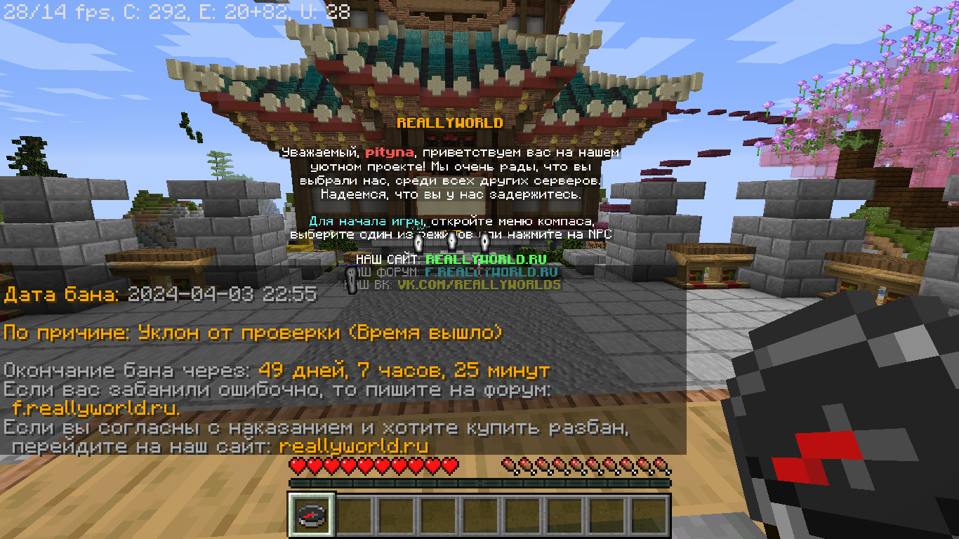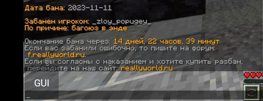 6.Дополнительный комментарий:я просто пвпхался в энде все друг-друга взрывали кристалами я тоже поставил 1 и тут меня кикнуло в хаб и бан на 15дней по причине не понятной мне , просьба меня разбанить