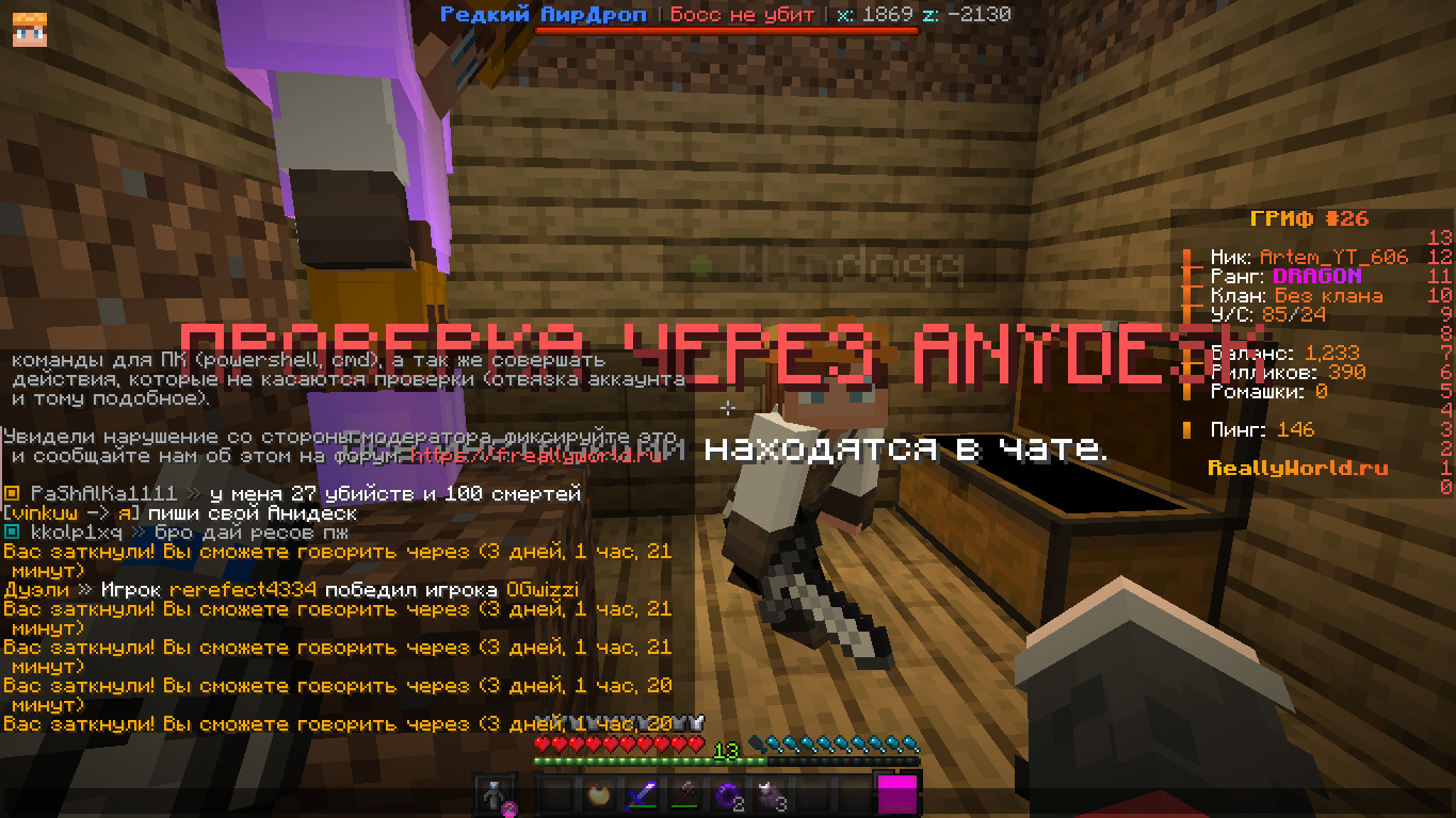 2. Ваш ник: Artem_YT_606 Дата нарушения: 02.04.2024 Суть нарушения: некк бан Номер грифа и режим гриферского выживания: GRIEF 26 Доказательства о нарушении (фото/видео): Дополнительный комментарий: да хоть я уклонился от проверки но я как бы не хочу давать не знакомому мне человеку управлять моим пк да он модер но я не кому не доверяю даже модерfv и плюс я даже незнаю что такое anydesk так что сделайте с этим что не будь