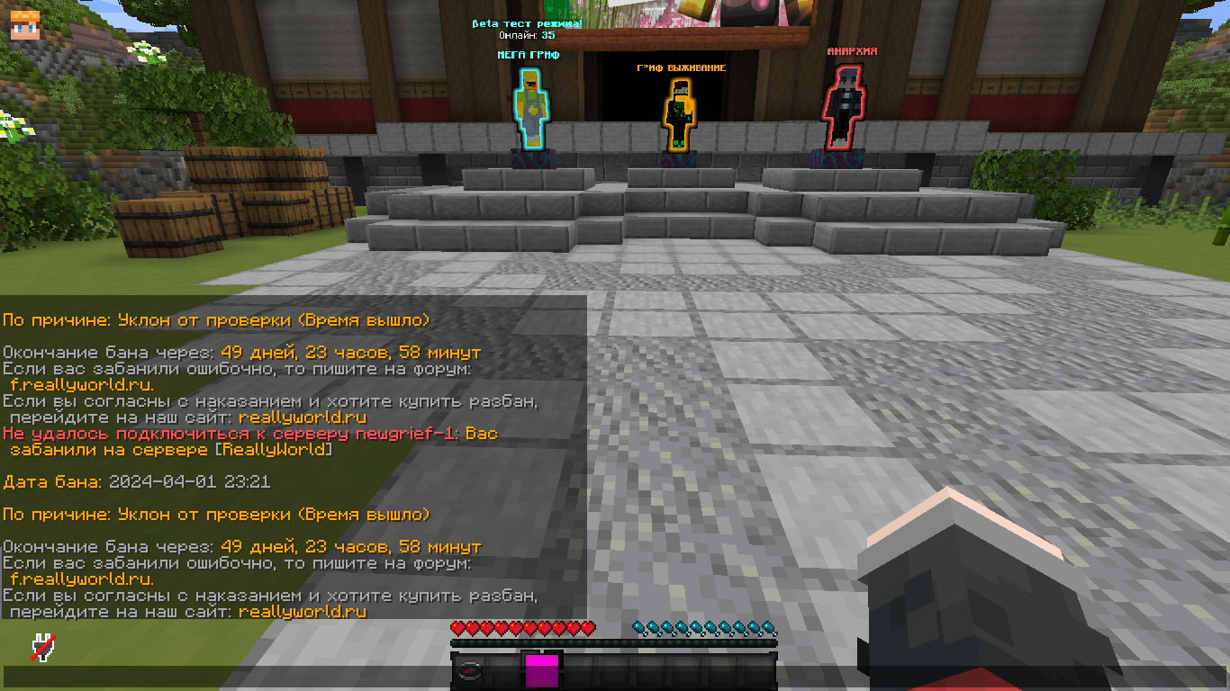 1. Ваш ник: Artem_YT_606 Дата нарушения: 01.04.2024 в 23:21 Суть нарушения: некк бан Номер грифа и режим гриферского выживания: GRIEF 26 Доказательства о нарушении (фото/видео): Дополнительный комментарий: да хоть я уклонился от проверки но я как бы не хочу давать не знакомому мне человеку управлять моим пк да он модер но я не кому не доверяю даже модерfv и плюс я даже незнаю что такое anydesk так что сделайте с этим что не будь