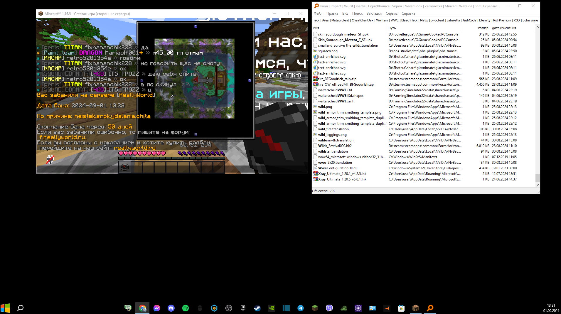 TTpOcTa Опубликовано 1 сентября, 2024 Опубликовано 1 сентября, 2024 Ваш ник:TTpOcTa_6E Дата нарушения:01.09.2024 Суть нарушения:neistek.srok.ydalenia.chita Номер грифа и режим гриферского выживания:гриф 34 Доказательства о нарушении (фото/видео): Дополнительный комментарий:по пункту 5.2.5 они удалены у меня с 12.07.2024 так что я нечего не нарушил!и вообще я тогда не играл с читами а хранил их потому что забыл их удалить после атерноса с друзьями! Извините за ник не увидел у меня была основа с таким ником но его украли !Всего вам доброго