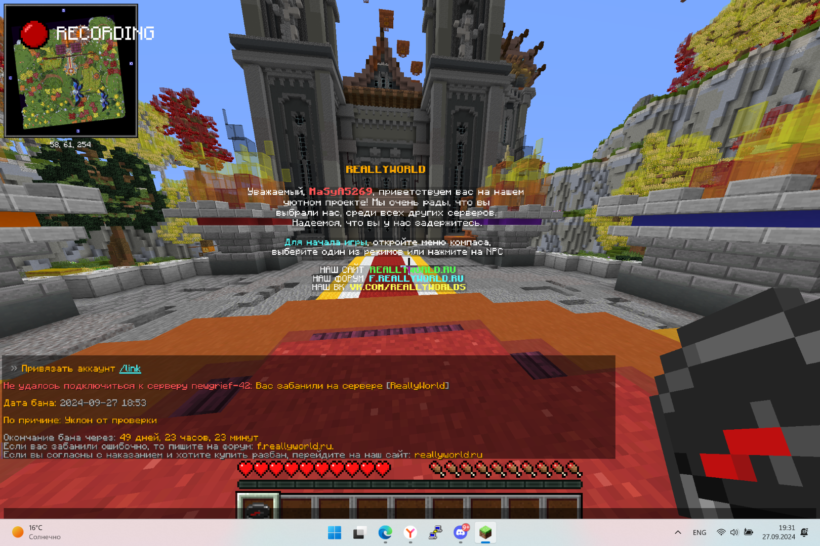 MaSyA5269 Опубликовано 7 октября, 2024 Опубликовано 7 октября, 2024 ваш ник:MaSyA5269. Дата нарушения 2024.09.27 суть нарушения:меня проигнорили и забанили за уклон от проверки:номер грифа и гриферского выживания 42 доказательства о нарушении фото/видео: Дополнительный комментарий:меня забанили за уклон от проверки без самой проверки, проигнорили.