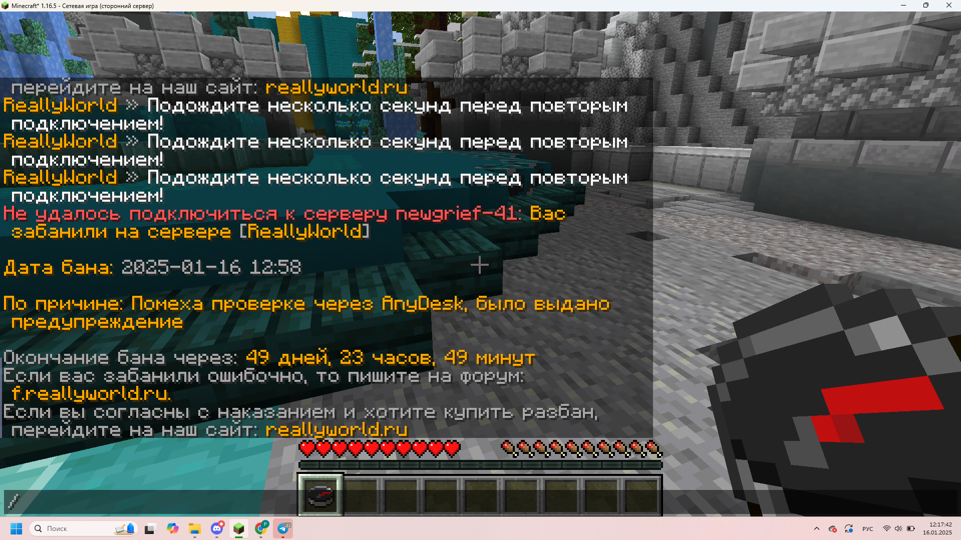 Rost Опубликовано 16 января, 2025 Опубликовано 16 января, 2025 1. rost300906 2. 16.01.2025 3. Забанили при прохождении проверки на читы 4. Grief-41 5. 6. Меня проверяют каждый день по минимум одному разу на протяжении недели. Я дал доступ проверяющему сначало все было норм он чекал ток папку с майнкрафтом как и все, а потом он полез в хром и начал заходить в мой вк и фанпей. Я вообще не понимаю как вк связано с майнкрафтом и читами. Меня проверяли 7 раз и читов не было. Модер даже не проверил корзину и полез в вк и фанпей и пытался ввести пароли. Я испугался и убрал мышку от моего вк ибо вк никак не касаеться манйкрафта. Даже домер в своих видео говорил, что они могут только лазить в папках связаных с майнкрафтом. Я один из топов 41 грифа и из-за этого бана меня могут спокойно обогнать. Что за бред?