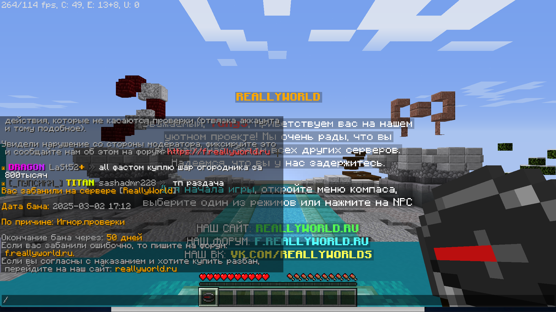 Yung3 Опубликовано 2 марта, 2025 Опубликовано 2 марта, 2025 Ваш ник:Yung3 Дата нарушения:2025-03-02 17:12 Суть нарушения:игнор проверки Номер грифа и режим гриферского выживания:26 Доказательства о нарушении (фото/видео): Дополнительный комментарий:начал заходить на сервер, грузил ресурпак, и когда он прогрузил, у меня бан за игнор, хотя я даже зайти не успел, а меня уже забанили