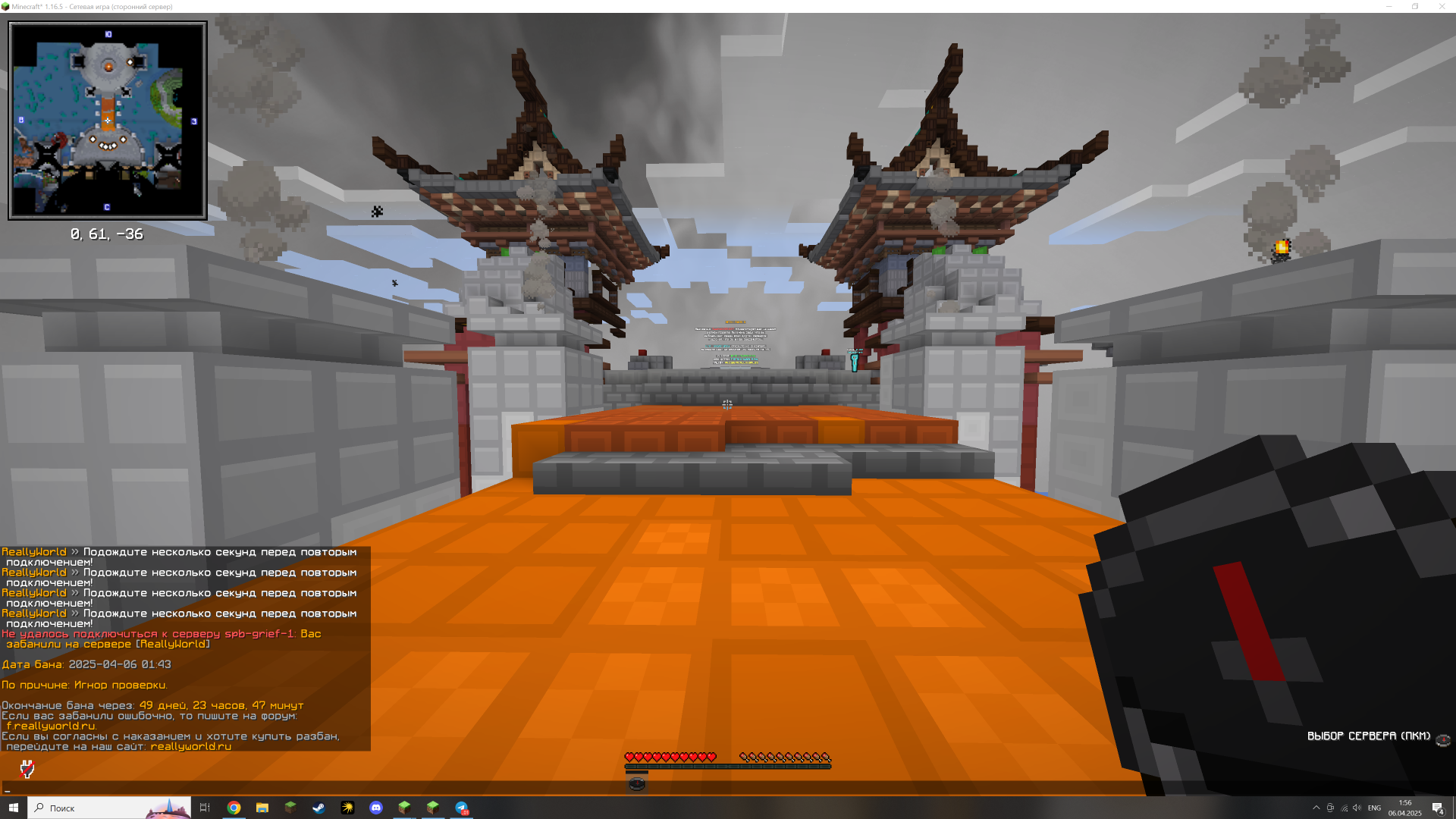 BobrSemenS1GmA Опубликовано 5 апреля, 2025 Опубликовано 5 апреля, 2025 Ваш ник: Sashok228337 Дата нарушения: 06.04.2025 Суть нарушения: Игнор проверки. Номер грифа и режим гриферского выживания: ру гриф 1 Доказательства о нарушении (фото/видео): Дополнительный комментарий: зашел чекнуть топ бал, отошел по делам прихожу и бан