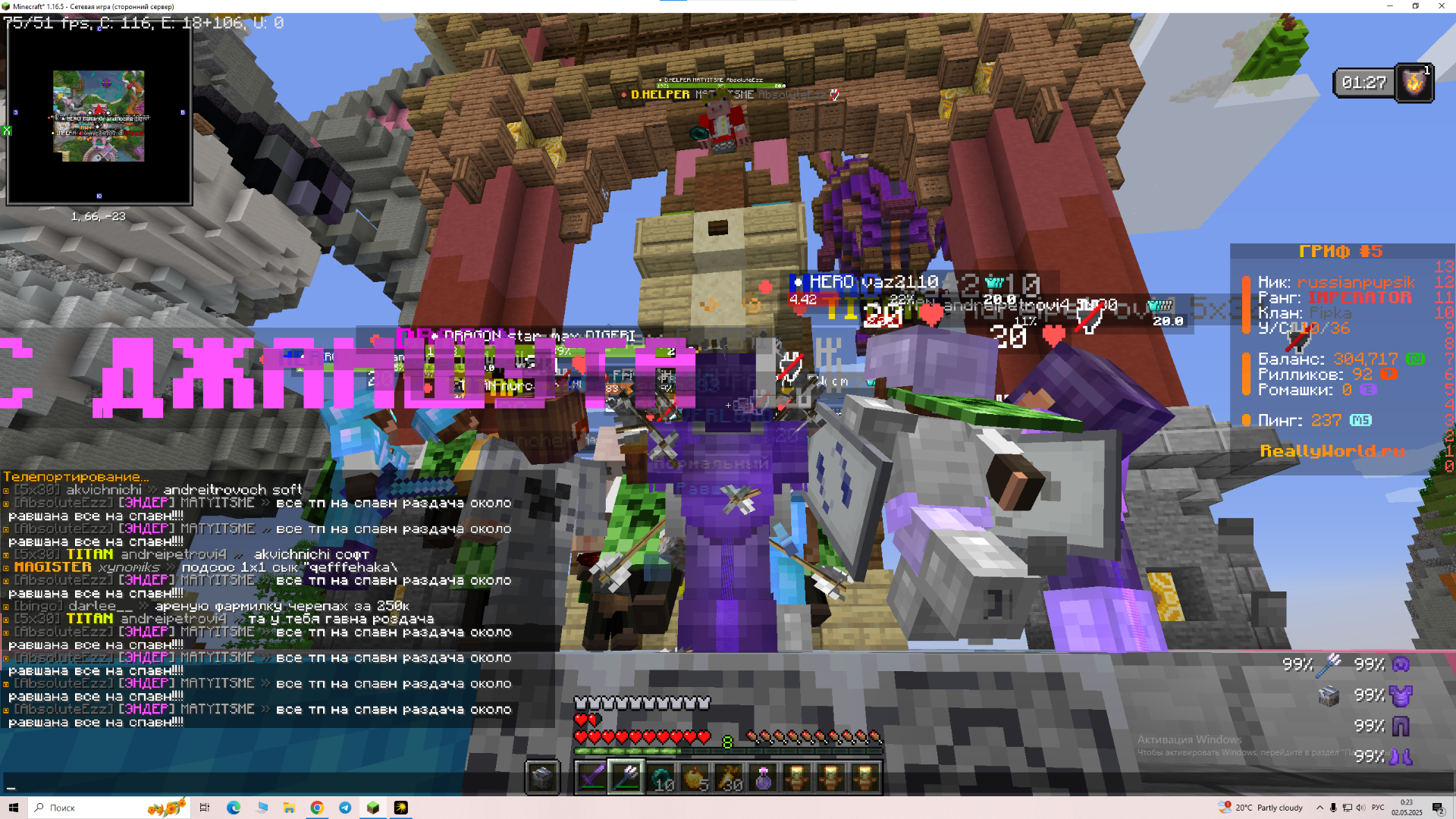 russianpupsik Опубликовано 1 мая, 2025 Опубликовано 1 мая, 2025 Ваш ник: russianpupsik Ник нарушителя: MATYITSME Дата нарушения: 02.05.2025 Суть нарушения: спам одной и тоже фразой На каком гриферском режиме было нарушение (MEGA-GRIEF/GRIEF-1.16) : GRIEF-5 Доказательства о нарушении (фото/видео): Дополнительный комментарий:ну еще просто он спамил и не сделал раздачу