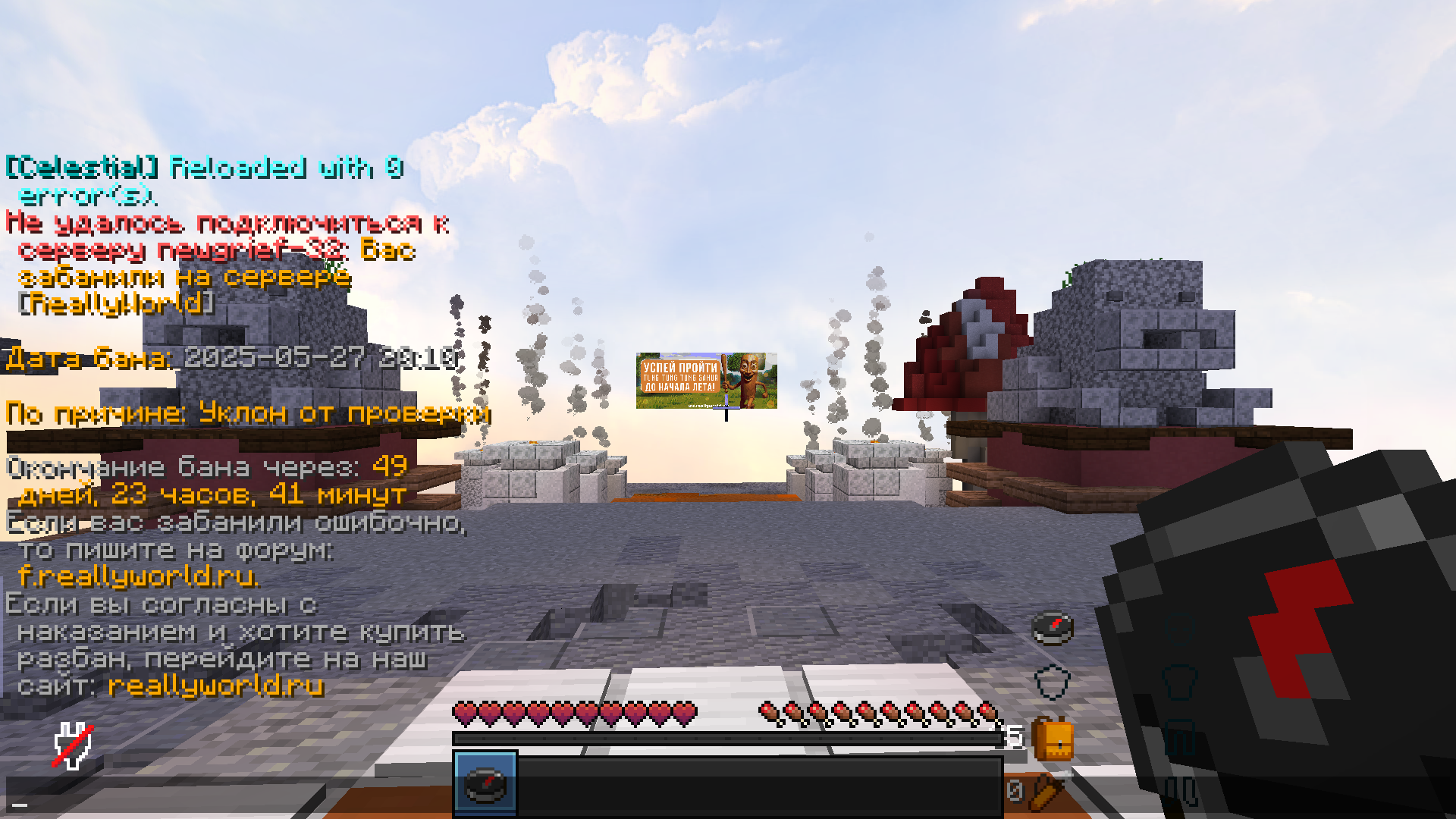 Fantom4el Опубликовано 27 мая, 2025 Опубликовано 27 мая, 2025 Ваш ник: Fantom4el Дата нарушения: 2025-05-27 20:10 суть нарушение: за быстрое копание что сервер не успевает ия застряю в блоках,модер на мои сообщения не отвечал+их не было на сервере Номер грифа и режим гриферского выживания: гриферское выживание, 32 гриф Доказательства о нарушении (фото/видео):