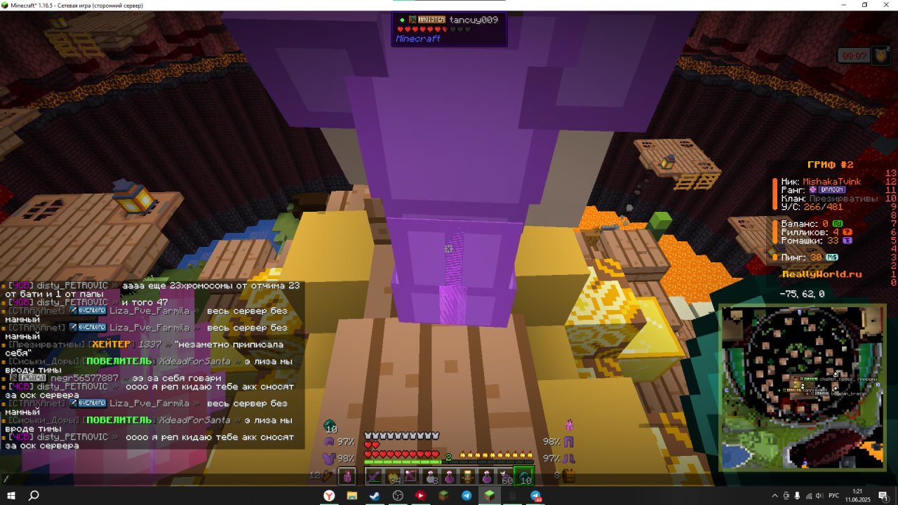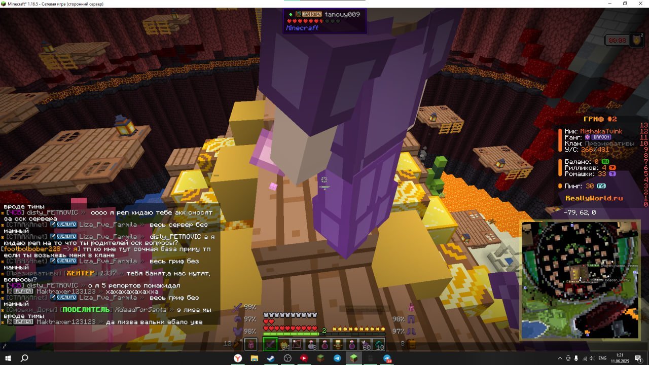 MishakaUMMishaka Опубликовано 10 июня, 2025 Опубликовано 10 июня, 2025 Ваш ник: MishakaTvink Ник нарушителя: Liza_Pve_Farmila Дата нарушения: 11 06 2025 Суть нарушения: оскорбляет гриф,родню,сервер ,читерша,забанте ее все акки На каком гриферском режиме было нарушение (MEGA-GRIEF/GRIEF-1.16) : сервер ru гриф 2 Доказательства о нарушении (фото/видео): фото Дополнительный комментарий: оскорбляет матерей,гриф,сервер,читерша,забанте ее 3 аккаунта,посмотрите дюп айпи,забанте по айпи,мешает играть,удолите ее клан
