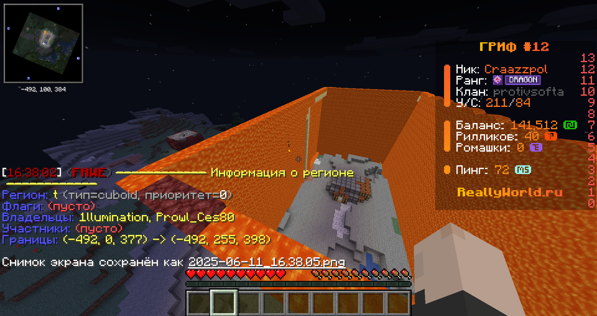xitidit Опубликовано 11 июня, 2025 Опубликовано 11 июня, 2025 Ваш ник: craazzpol Ник нарушителя: 1llumination и Prowl_Ces80 Дата нарушения: 11.06.2025 Суть нарушения: Залив лавой На каком гриферском режиме было нарушение (MEGA-GRIEF/GRIEF-1.16) : grief - 12 Доказательства о нарушении (фото/видео): Дополнительный комментарий: я точно не знаю но вроде правило 6.1.1 вроде относится к этому