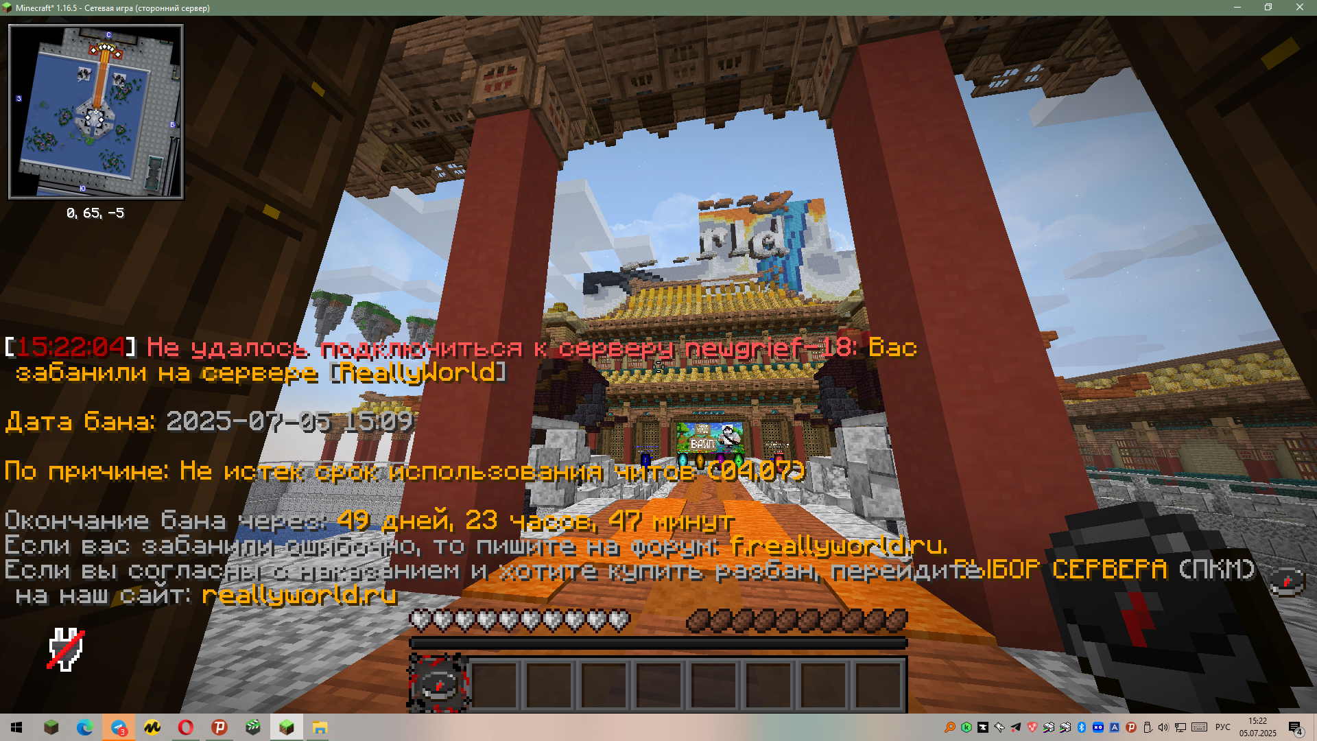 xitidit Опубликовано 5 июля, 2025 Опубликовано 5 июля, 2025 Ваш ник: Craazzpol Дата нарушения: 05.07.2025 Суть нарушения: бан без причины Номер грифа и режим гриферского выживания: grief-18 Доказательства о нарушении (фото/видео): Дополнительный комментарий: я в шоке я просто была в афк а потом подошла поговорить с подругой меня сразу же вызвали на проверку до этого меня вызывали два раза буквально один из них вчера же (04.07) после моего бана забанили и подругу без причины даже не проверив