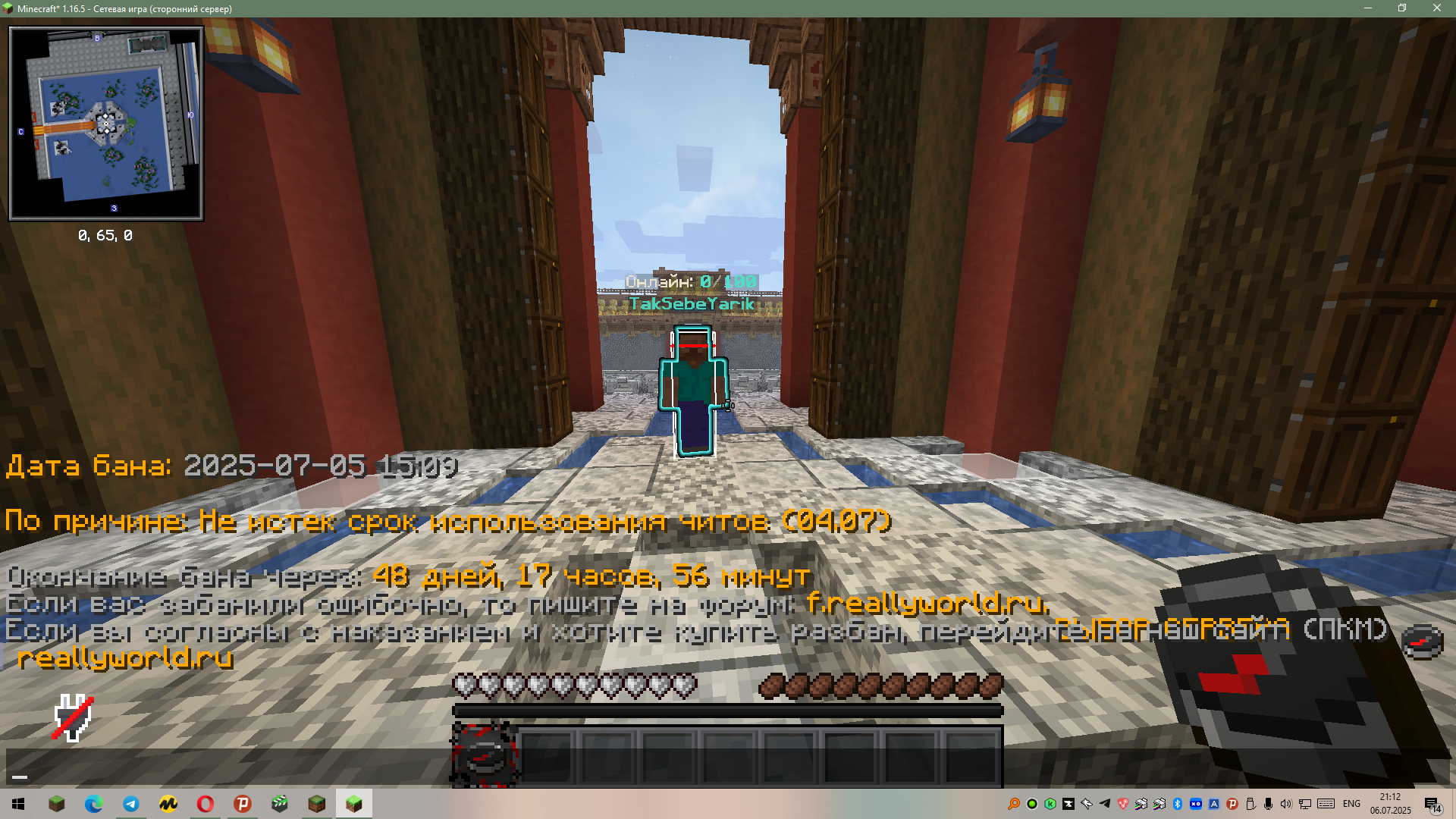 xitidit Опубликовано 6 июля, 2025 Опубликовано 6 июля, 2025 Ваш ник:Craazzpol Ник нарушителя(представителя форума): dixenRW Суть нарушения/ошибки администратора: не одобрил рек на разбан Когда это произошло/происходит: 05.07.2025 Что должен был сделать?(Администрация форума): разбанить Доказательства о нарушении (фото/видео): Дополнительный комментарий, ссылка на жалобу (если есть): Извините но у меня нету читов скорее всего тот кто меня проверял допустил ошибку ведь он долго не кидал мне запрос скорее всего я не одна была на проверке у меня абсолютно нет читов я играю на сервере reallyworld уже несколько лет так ещё и с драгона прошу вас одобрить заявку и проверить меня на читы ведь до 05.07 меня проверяли вчера же и у меня не обнаружили читов