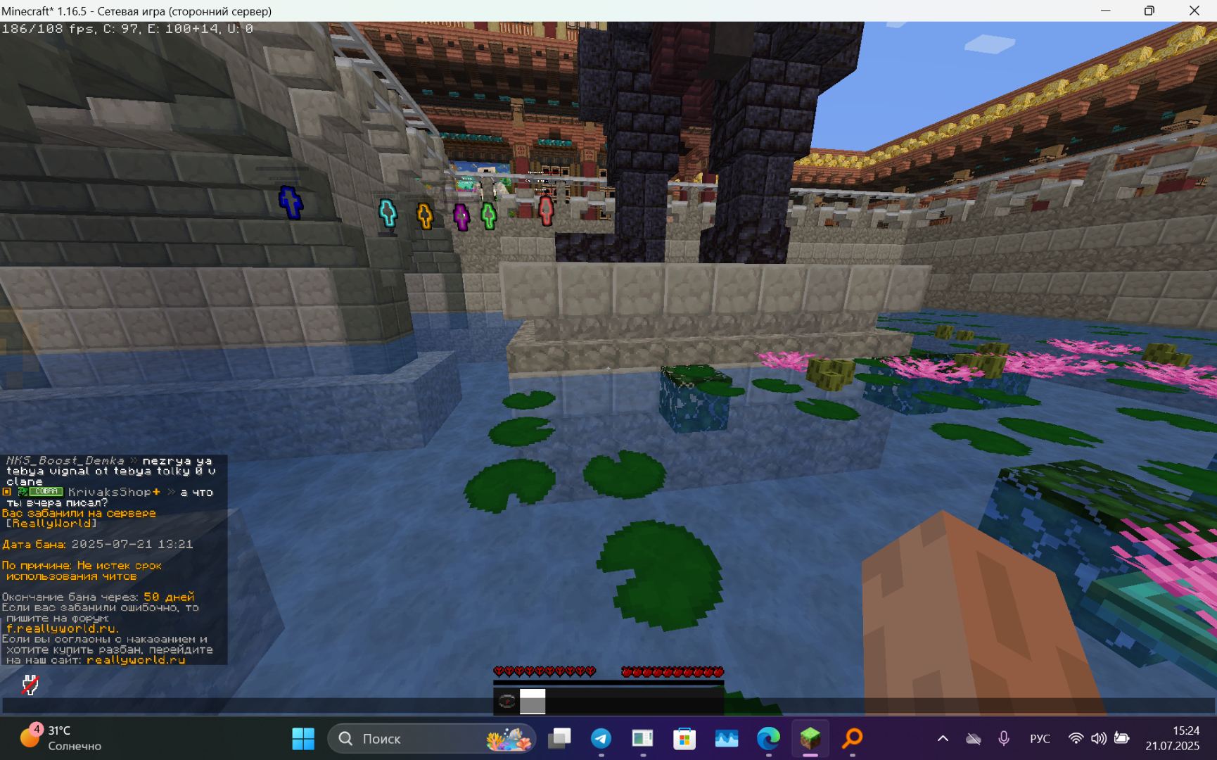 panoshik1 Опубликовано 21 июля, 2025 Опубликовано 21 июля, 2025 Ваш ник: panoshik17777 Дата нарушения: 21.07.2025 Суть нарушения: не истек срок использования читов Номер грифа и режим гриферского выживания: 2 Доказательства о нарушении (фото/видео): Дополнительный комментарий: у меня нету читов и не было , меня забанили по ошибке , если что-то нашли можно хотя бы узнать что потому-то я не чего не качал из читов, прошу разбанить.