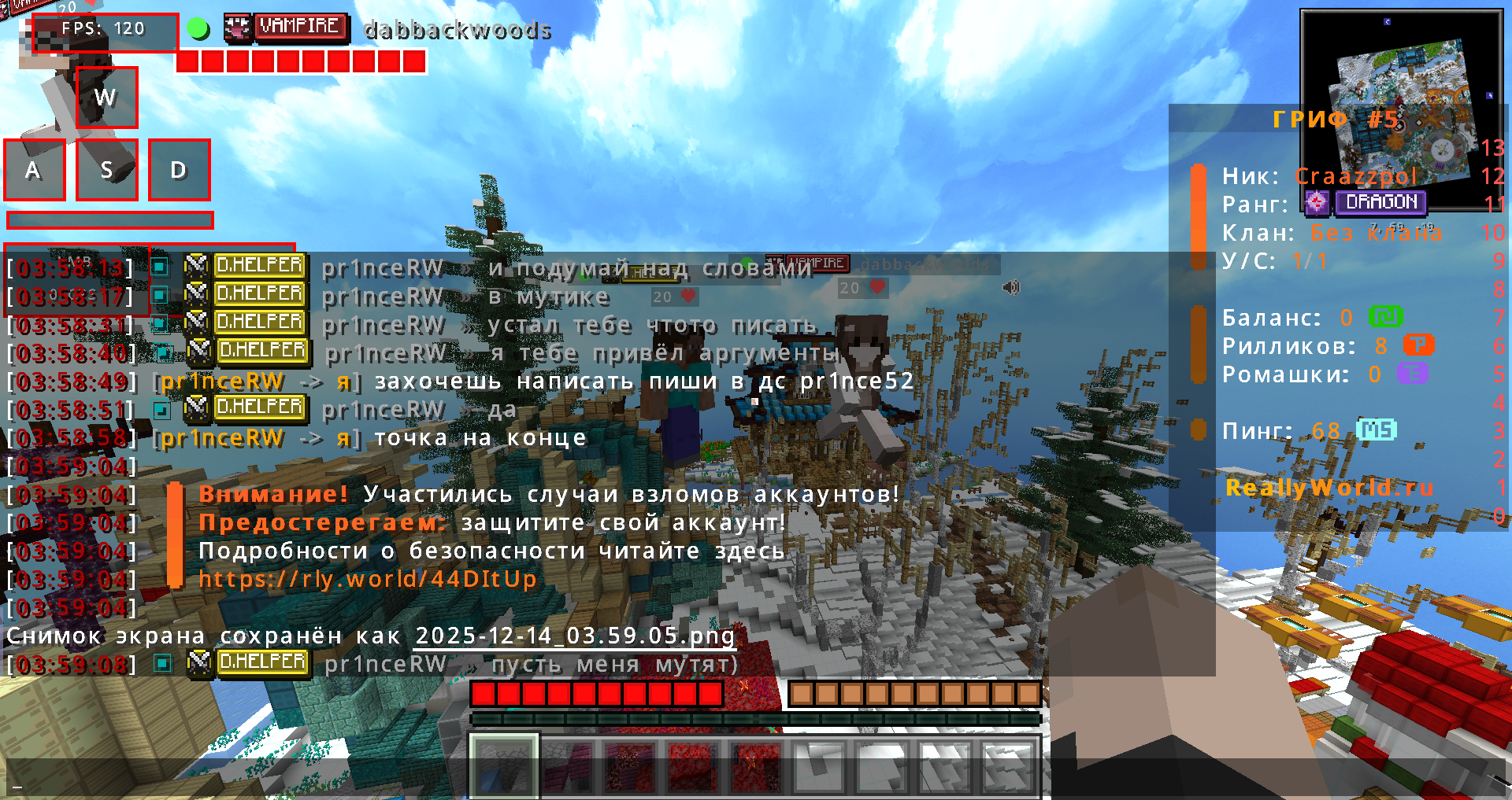 xitidit Опубликовано 14 декабря, 2025 Опубликовано 14 декабря, 2025 Ваш ник: craazzpol Ник нарушителя: pr1nceRW Дата нарушения: 14.12.2025 Суть нарушения: обнаглевший д хелпер (Мут и размут + мут себя же. Превышение полномочий На каком гриферском режиме было нарушение (MEGA-GRIEF/GRIEF-1.16) : grief 5 Доказательства о нарушении (фото/видео): Дополнительный комментарий: Какой то обнаглевший д хелперок пришёл познакомится с подругой со слов малая. мы слегка повздорили и я написала заблюренное слово Др***** а потом написала дрчить из за этого замутили . Окей может это считается, только есть одно но. этот чел сам написал слово дрчить, а потом когда моя подруга попросила размутить меня, он меня размутил без всякого замутил и размутил, а до этого он замутил себя + нафига то скинул свой дискорд после этого *чек скрины*