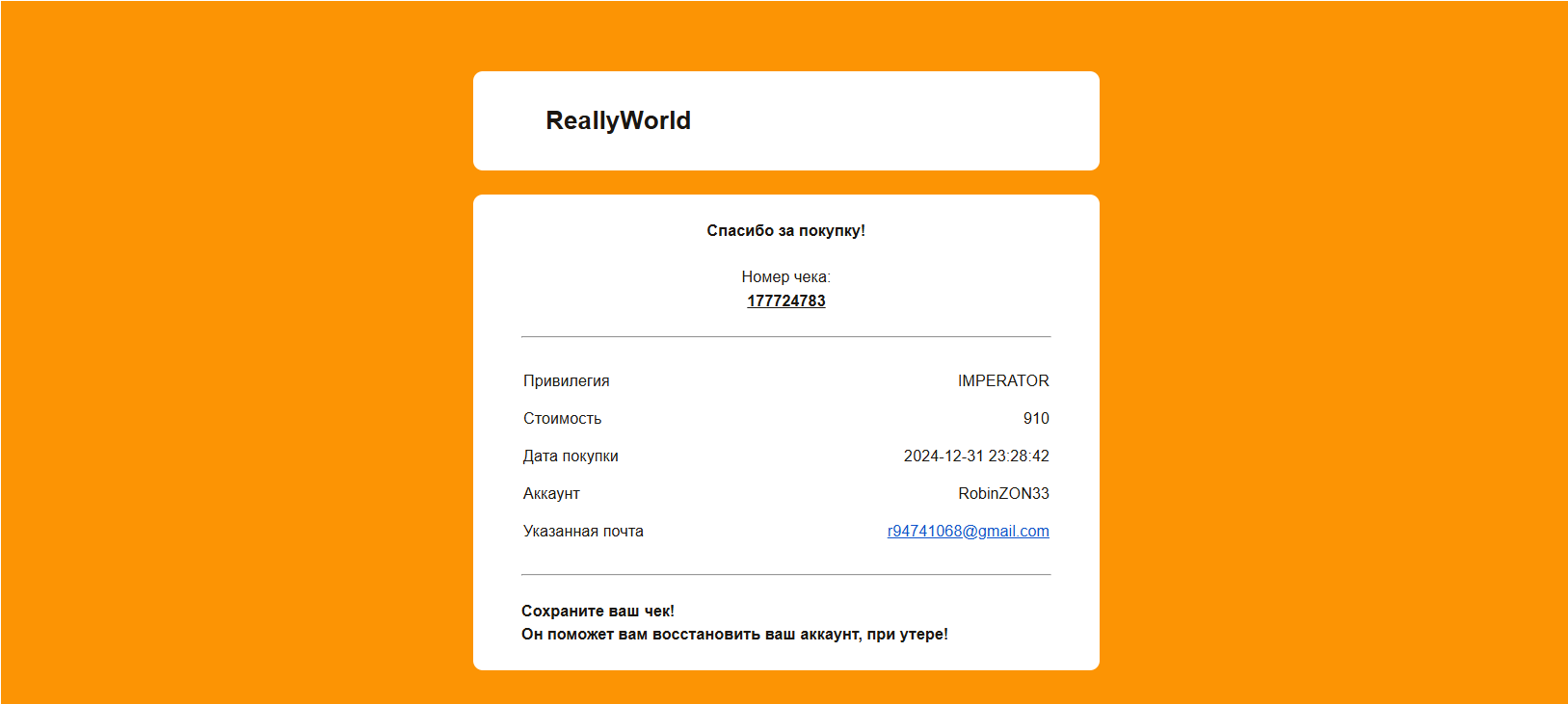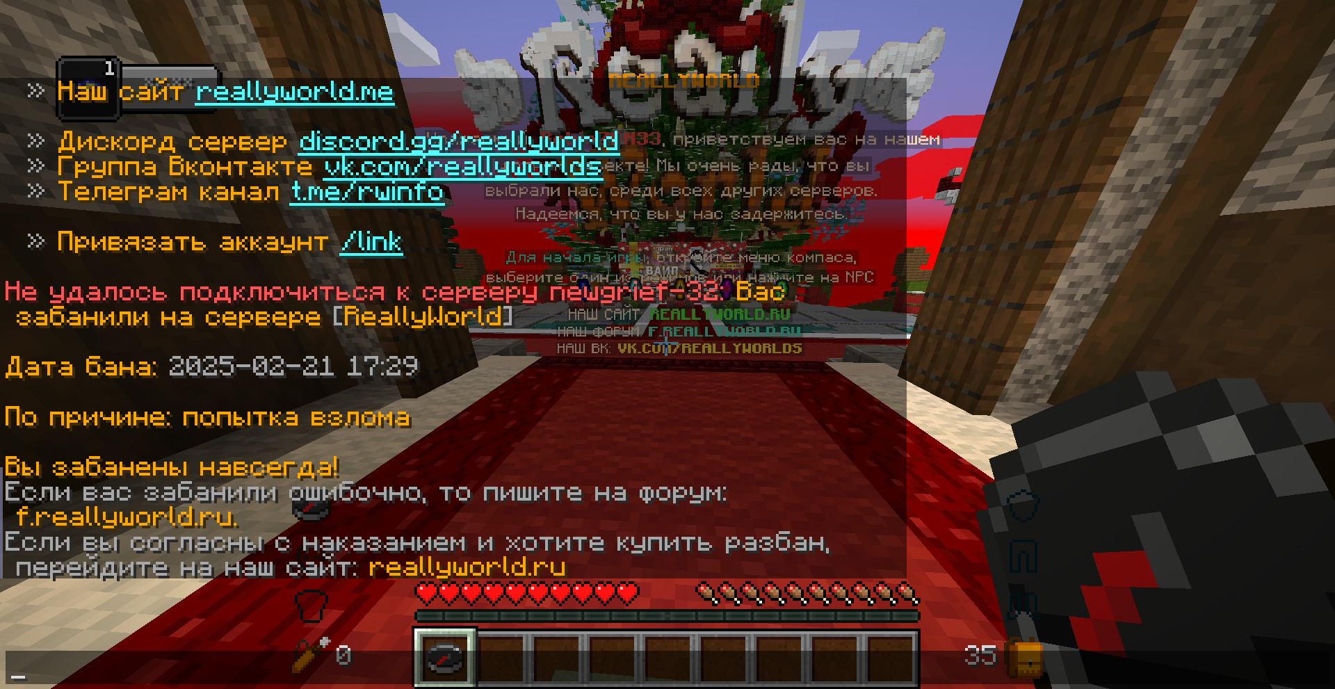 Radik003 Опубликовано 28 декабря, 2025 Опубликовано 28 декабря, 2025 Ваш ник: RobinZON33 Дата нарушения: 2025-02-21 17:29 Суть нарушения: Меня взломали и меня забанили НАВСЕГДА у меня нету денег чтобы купить разбан поэтому хочу чтобы меня разбанили. Номер грифа и режим гриферского выживания: вродебы 13 Доказательства о нарушении (фото/видео): Дополнительный комментарий: Я прошу не пишите "Прошло более 3 дней" я молю чтобы меня разбанили я уже его привязал и все сделал но меняя забанили сверху есть чек мой покупки номер чека: 177724783 Я МОЛУ О РАЗБАНЕ ПОЖАЛУЙСТА Я ОЧЕНЬ ДАВНО НЕ ИГРАЛ