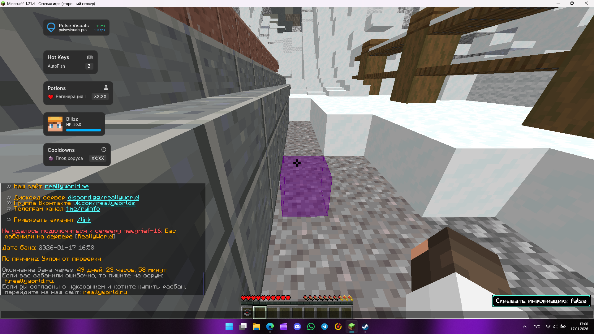 blilzz Опубликовано 18 января Опубликовано 18 января Ваш ник:Blilzz Дата нарушения:17.01.2026 Суть нарушения:уклон от проверки Номер грифа и режим гриферского выживания:16 Доказательства о нарушении (фото/видео): Дополнительный комментарий:модер сказал кидать рек на форум