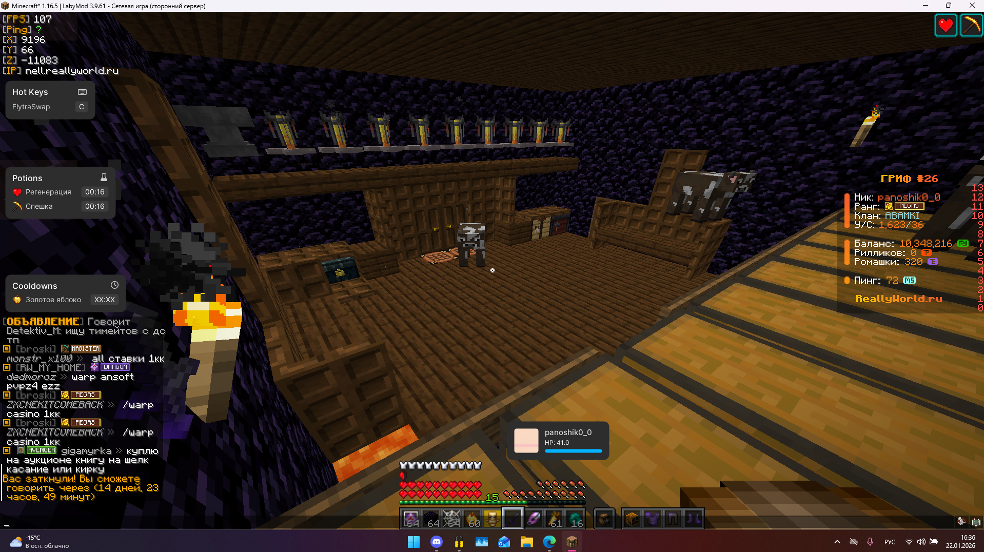 panoshik1 Опубликовано 22 января Опубликовано 22 января Ваш ник: panoshik0_0 Дата нарушения: 22.01.2026 Суть нарушения: мут Номер грифа и режим гриферского выживания: 26 Доказательства о нарушении (фото/видео): Дополнительный комментарий: дали мут просто так на 15 дней без причины